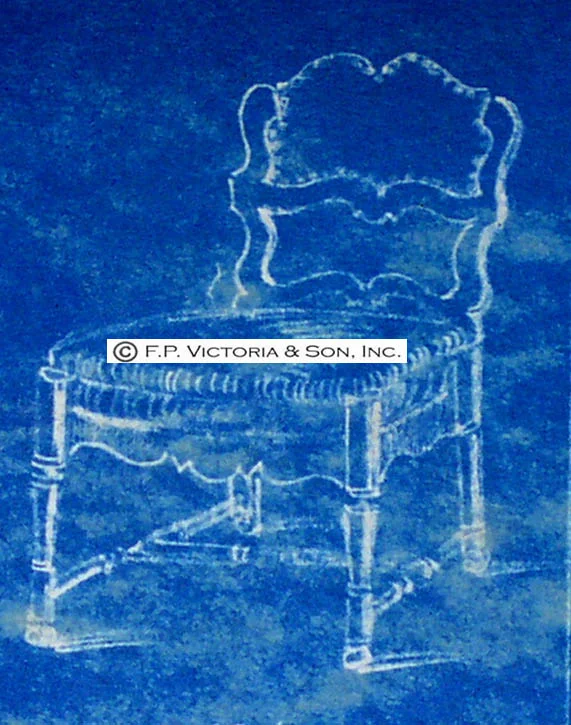 The reference sketch from the Victoria & Son Design Archive for a side chair made for Mrs. Mellon
