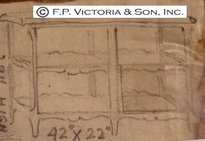 Design Archive sketch for a very versatile Louis XV style book table, made by Victoria & Son for Mrs. Mellon